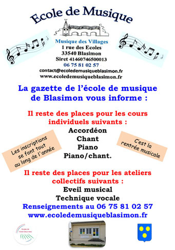 L'école de musique de Blasimon, loi 1901 a été créée le 24 octobre 1997.